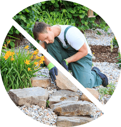Pregătim terenul, montăm sistemul de irigații, gazonul și plantele.